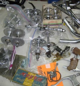 I am not good at taking photographs at bicycle swap meets as I am too busy shopping and talking it up to many of the sellers and fellow bicycle collectors. It is a fault of mine that I like to buy super awesome stuff and then offer it to waiting recipients at home. Sometime fellow collectors joke how I buy all the cool stuff and leave nothing for them but I do not haggle or complain about price, I either accept it or walk away. If the seller wants to deal, I then deal, but I am not out to rob people, I want both parties to feel like we got a deal, and everyone is happy.