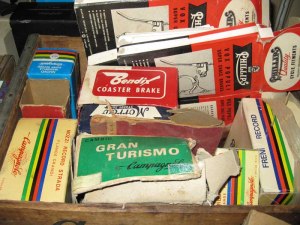 together. the type that cannot even through away the packaging that parts come in. Looking back at some of the cool boxes we have and saving the graphics, it is great that we did it(and others before us), but still hard to justify shelf space for empty boxes when space is at a premium! I have seen some old bike parts boxes sell for the hundreds of dollars to collectors. Goes to prove that one man’s junk is another man’s treasure.