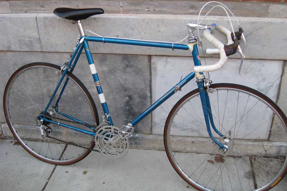 It is sacrilegious to part out a complete bike in the collectors world. With that said, it is unspoken truth that it happens all too often for many reasons, but the main one being that generally the parts are worth more than the whole. Someone willing to spend $200 on a set of Campagnolo Nuovo Record wheels and $75 for a set of Stronglight cranks and $100 for Campagnolo Nuovo Record derailleurs and shifters, makes it hard to try to sell the complete bicycle for $500-$600. That still leaves many parts on the frame and the frame might then sell for a couple hundred dollars itself. This is the case with the Motobecane Le Champion bicycle seen here in the photograph. I have received offers of $300 for the complete bike, when it was listed on ebay, but have also received an offer of $200 alone for the wheels.I am keeping the bike together, as it is an example of a nice French road bike from the early 1970s. They are getting harder to find in this original state. I offered it on Ebay to no avail so I finally decided to just add it to the website for sale and hopefully there it will find a good home.