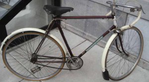 Next is the Rudge Pathfinder. Nice late 1950s-early 1960s bike. Paint and graphics are beautiful. Appears the frame was originally designed for a rear derailleur, as it has a braze on shifter boss and a gear cable stop on the chainstay. Currently it is set up with a Sturmey Archer SW 3 speed hub, which dates the wheel to 1957, as it was availible for one year. The bike looks as if it was never setup with the shifter and derailleur, on as a 3 speed bicycle. This beautiful bike is now looking for a loving home as well.