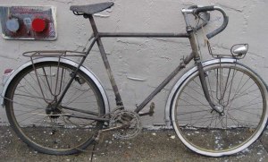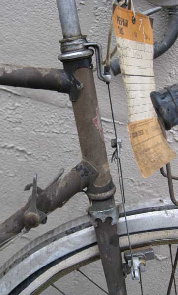 I guess this bike would be an entry lever touring bike. This bike is what collectors would call “barn fresh,” it is in the same state it has been in for a really long time, taking the date from the tag hanging on it, since 1983, over 25 years untouched. There is much to be upgraded on it to make it a more reliable and lightweight