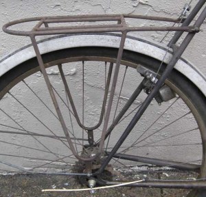 This bike is mid-level 1960s touring bike. Fr0m a distance, it looks like a typical French touring bike complete with racks, fenders, lights and even Guidonnet brake levers. But upon closer inspection, one notices heavy steel rims, cottered steel cranks, and 2nd tier components. That is not to mention the lax attention detail on on the frame and lug treatment.