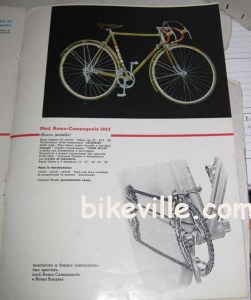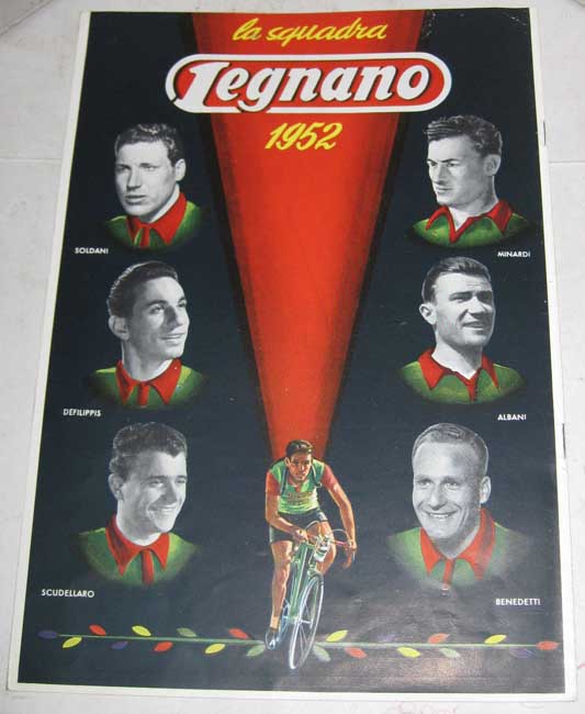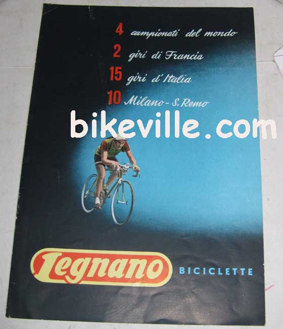 1952 Legnano catalog. this was the first production year for the Campagnolo Gran Sport derailleurs. They had appeared on race bikes the year before, but first time being offered on a bike a consumer could buy- a catalog bike. kind of neat. colorful catalog of10 pages, offering 16 models of bikes. we are currently selling this on ebay HERE
