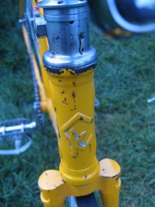 Very interesting buildup of initials on the headtube(believed to be of the rider, not the builder)