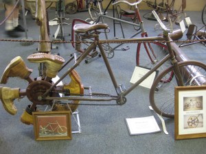 The talks were interesting and even trumping that was the Metz Museum, that leans toward early bicycles, but also shows David Metz sense of humor. Included amongst Star, Punnent Companion, and Eliot-Hickory bicycles is a display of clown bicycles. He also has various exhibits of wacky things, like mouse traps, bottle openers, and early roller skates.