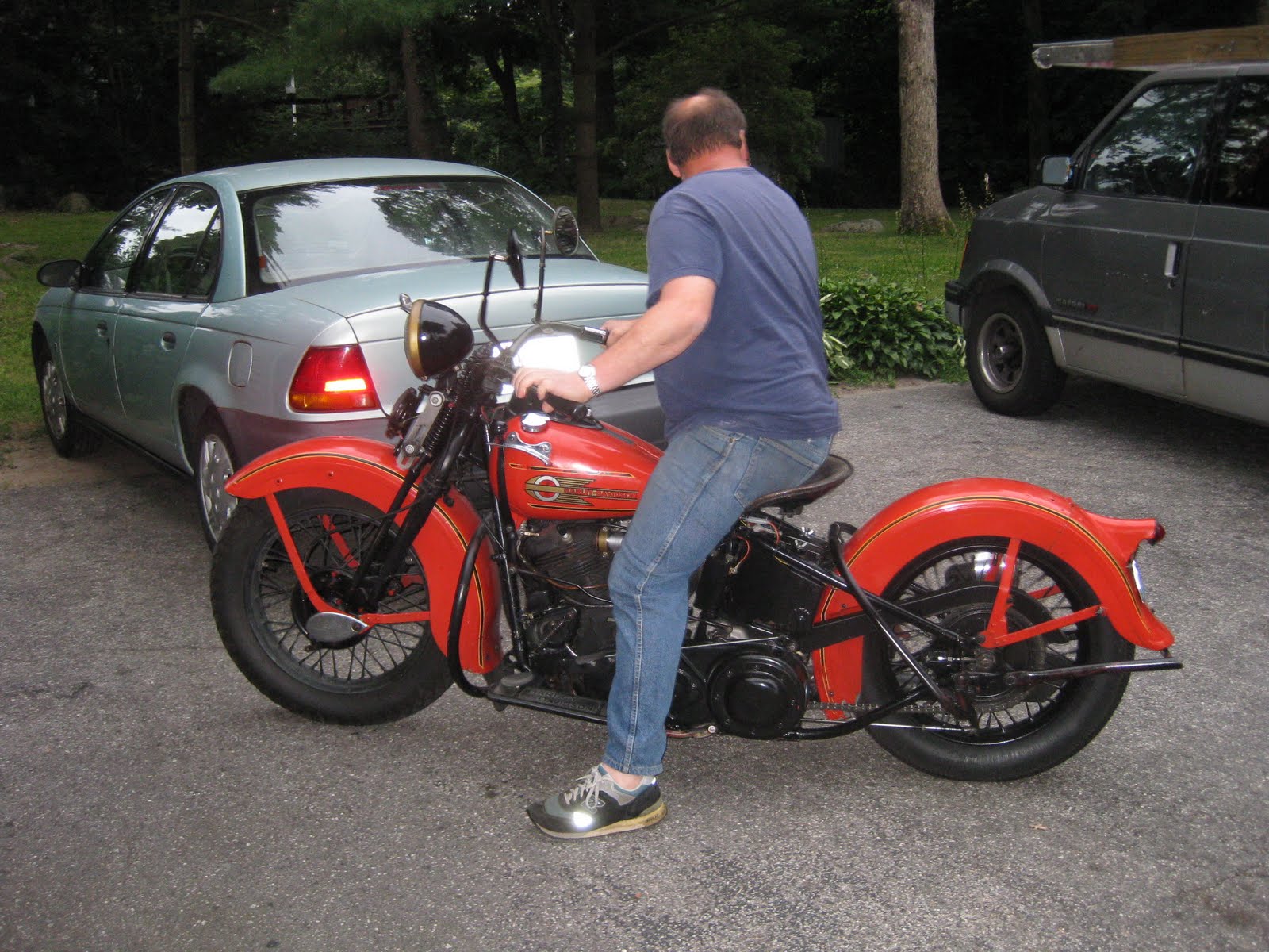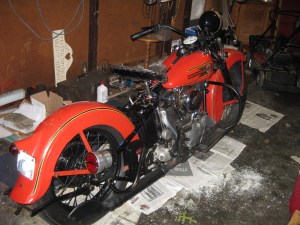 While on the road, we find ourselves staying with friends and family and this time we stayed with Curtis’s cousin who happens to be the proud owner of a 1937 Knucklehead, along with a lovely dog, Maddy, and cat. After taking a couple pictures of it in the garage, he decided to pull it out and do some technical maneuvers around the yard. Seeing him navigate at such slow speeds, doing tight turns on varied terrain with a foot clutch nonetheless, I realized I was watching someone that was in tune with his machine. It reminded me of technical bike riding, where bicyclists ride at very slow speeds to traverse over logs, rocks and other obstacles, not allowing the rider’s foot to touch the ground.