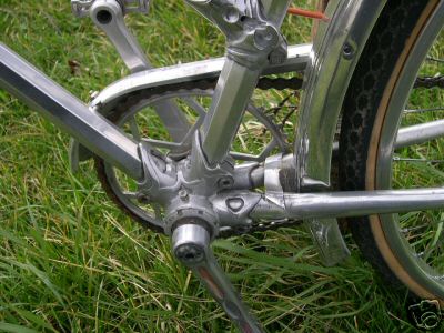 This Caminade showed up on Ebay about 5 years ago. Finding high-end ladies bicycles are rather difficult, and one in this condition even harder. It is in beautiful condition, and I love the heart cutout on the headlug connecting the toptube. Simon Firth also built a bicycle for his lovely wife with a heart cutout as well, at Bilenky Bicycles here in Philadelphia. I wish I had a photo of that.