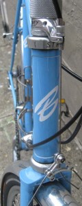 Davis(David to his mother and father), has been working at Via Bicycle for some time now, many 7 years, maybe 300, it’s hard to say, he seems to know everything about the business. He works part time at Bilenky Cycle Works in North Philly learning the bicycle building trade there, I assume to one up me. Under the firm tutelage of Simon Firth and Stephen Bilenky, this bicycle was built for him, by him, with a little help from his friends. Bilenky Cycles, known for their retrofitting of S & S couplers on frames to make them more transportable, is a formidable bicycle building force. The frameset is built up with a mix of Shimano and Campagnolo, even with a hint of Velo Orange.