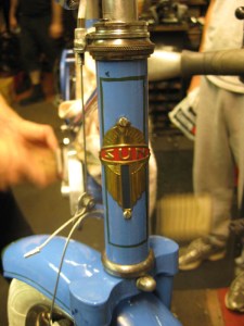 This little bicycle is not a Sun made bicycle, the headbadge was added as a pun, because Curtis bought it for his son. The bicycle is French, with French pedal threads, and juvenile French threaded hubs. The bicycle has many unique and high end parts for the a kids bicycle. Alloy hubs, alloy cotterpin cranks, cantilever front brake, fenders, and even a leather saddle. It was definitely built by frame builder who put a lot of time into it. I have never seen alloy cotterpin cranks in this size, so it is probably safe to assume that they were produced by the person who built the frame. I date this bicycle somewhere in the 1950s-1960s.