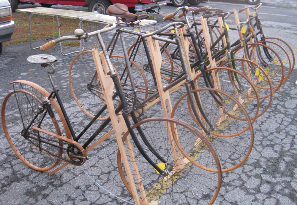 There were lots of interesting bicycles and parts there. This swap meet caters more to the vintage bicycle, compared to the swap meet at the velodrome that is new lightweight stuff. There were piles of Schwinn Stingrays, and balloon tire bikes, and even quite a fair share of turn of the century bicycles with wooden wheels.