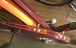 I suppose depending on BB you could have chainring/chain stay clearance issues. Good looking bike. That pinstripped steed has almost moved into the realm of art. I have a couple of fancy-dancy bikes, but I couldn't bring myself to ride that one.