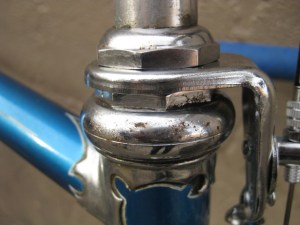Appears to be an early 1960s Schwinn Paramount. I forgot to jot down serial number to check. The details point to early 1960s-boxlining, early Campagnolo headset, raised pedal lip Campagnolo cranks, Campy dropouts with hole for Gran Sport spring.