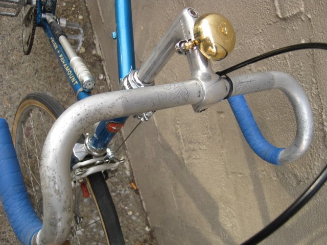 Appears to be an early 1960s Schwinn Paramount. I forgot to jot down serial number to check. The details point to early 1960s-boxlining, early Campagnolo headset, raised pedal lip Campagnolo cranks, Campy dropouts with hole for Gran Sport spring.