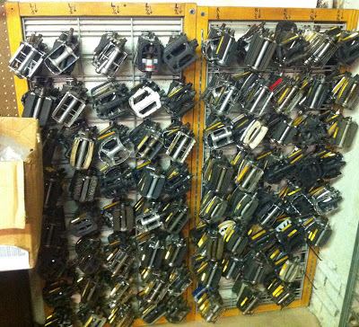 When it a little less busy in the fall and winter we begun to organize the shop, after a busy summer. One of the tasks is trying to make sense of all the mix-matched pedals, ones that do not have a mate. We use these for repairs and sales. fun.