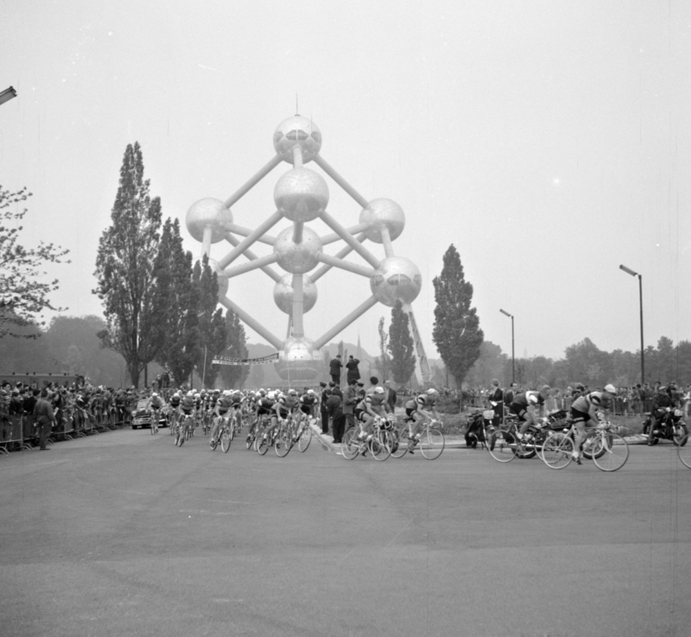 (Italian Giusto Cerutti has a broken wheel after a fall. According to the rules he is not alowed to accept help. Tour de France 1928)