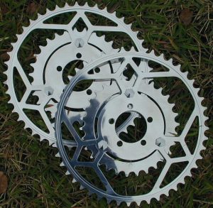 I thought I had thought of everything when it came to planning out my custom bike Simon Firth is building me but one collector friend reminded me how interesting older chainrings were. I have always loved these Stronglight Touriste chainrings were, and we have a set here that I have always coveted. So, I think I am going to get a set reproduced, for my new bike. The photographs below are of reproductions made in Japan, with the current price of $550 for a set! Yikes!