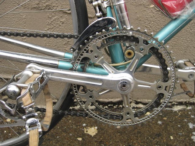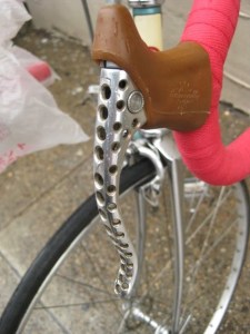 A beautiful early 1970s Holdsworth decaled as a Hill Cycle, the premier pro cycling shop for many decades in the Philadelphia area. This was the show bike, detailing some of the high quality drillium that they were capable of doing. Back in the early 1970s, drilling and milling parts was all the rage in the pro-cycling world. Sure there was a limit to how much material could be taken out, but there was only one way to find out.