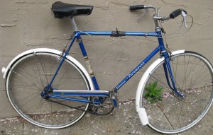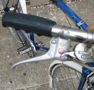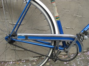I purchased this bike a few years ago from a fellow Classic Rendezvous listmember and it is a bike I have always looked for. I have owned numerous Paramounts over the years and currently also own a 1968 Paramount track bike but I always wanted a city bike Paramount. This bike was originally set up this way, with a chainguard, fenders, Sturmey Archer AW 3 speed hub, Titan stem and upright handlebars. The bicycle also has original Schwinn Paramount cottered cranks, Campagnolo no “Record” front hub, Brooks mattress saddle, early version Weinmann engraved brakes, and dark blue Schwinn grips.