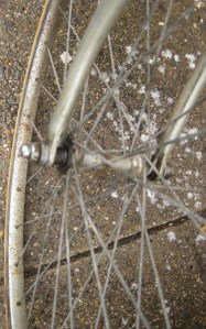 Cotter cranks, steel rims.