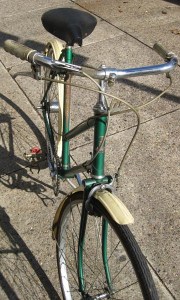 Recently sold at the shop53cm Raleigh Lenton ladies bicycle. Reynolds 531 tubing. Sturmey Archer 4 speed internal rear hub. Milremo pedals. Beautiful Raleigh decaled plastic fenders. 26 x 1 1/4″ wheels. This bicycle will clean up beautifully. The paint, decals, and pinstriping is in excellent condition, and the chrome will polish up nice and shiny. This bicycle is a super example of a 1950s-early 1960s unrestored, original bicycle.