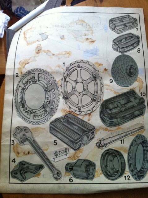 I was lucky enough to locate another set of Daniel Rebour drawings during my travels in France. Unlike my other sets of Rebour drawings, I also have the page from Le Cycle magazine that the drawings were used for. Win-Win!! I now have to have my friend properly restore and make the drawings archival.