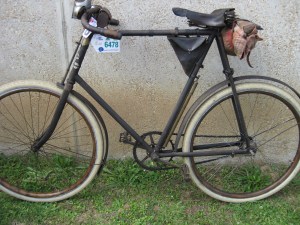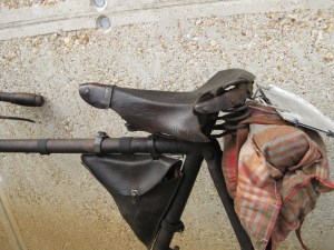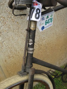 Yes, this bike was ridden the whole route of Paris Brest Paris. It is a single speed with an Eadie coaster brake rear hub, plunger front brake and leather saddle, that has seen better days.