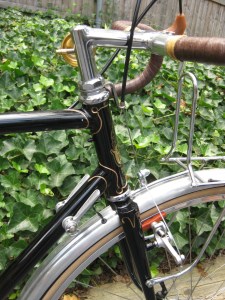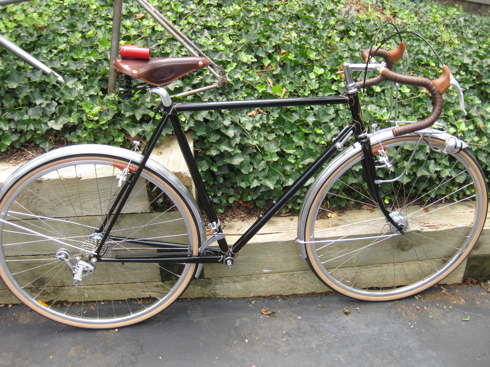 Johnny Coast makes beautiful bicycles in Brooklyn, NY. I happen to see this bike at an open house at Jamie Swans shop a couple weeks ago. Interesting solution for a front bag support. I really liked the Grand Bois rims as well.