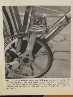 I recently ran across these pages ripped out an old cycling magazine, and loved the engineering of the crank. The caption speaks of the pedals, which are unique, but those cranks are funky. I can’t really see how it is attached to the spindle. Anyone out there know? Or even better, have a picture?