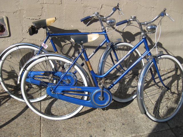 Beautiful pair of Bianchi Sport city bicycles we recently sold. They were equipped with Bianchi proprietary headset, Sturmey Acher 3 speed hubs, and full chaincases.