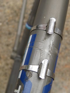 included 2 Shimano toptube brake cable clamps and one chainstay cable stop.