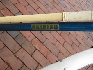A repainted Raleigh Lenton Tourist seen at a recent bike swap. I really liked the blue color, but upon closer inspection one sees it is a repaint, with the original decals masked off, revealing the original paint was the more familiar green. It is a nice taller frame. Reynolds 531 tubing. The chainguard is not correct.
