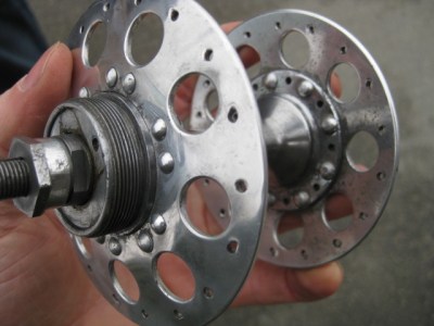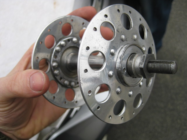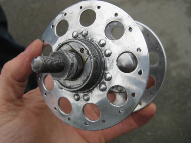 In the late 1930s into the 1950s, some French bike builders(Rene Herse, etc) would modify existing parts, making them more functional and in turn more aesthetically pleasing. This hub, I believe to be Pelissier?, had larger flanges added, which would allow the repairing of a broken spoke without having to take the freewheel off the wheel. So one could repair a driveside spoke without have the wheel off the bike for an easy roadside repair. The hub also looks amazing.