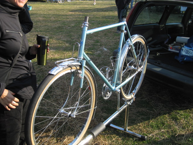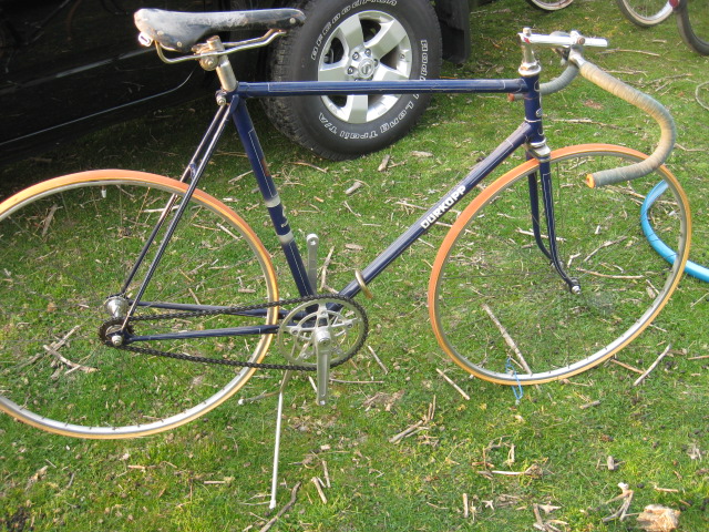 Durkopp track frame with a mix of parts. FB hubs, Stronglight 93 right arm, mod 49 left arm. Brooks Swallow saddle, Philippe adjustable stem.