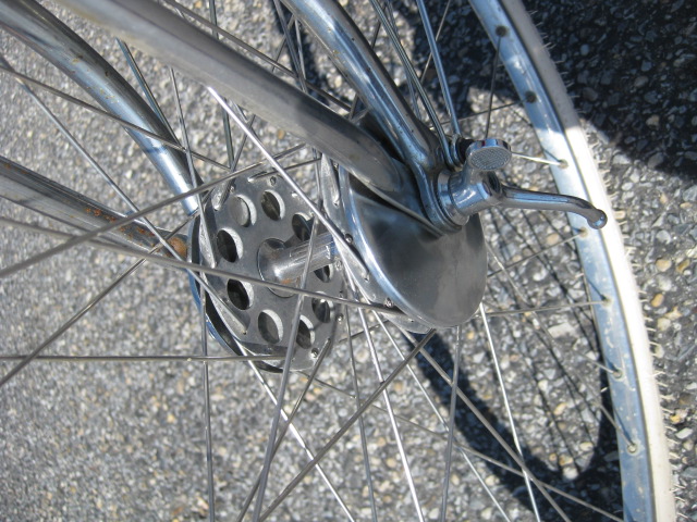 Front brake on the Dei, notice the cork brake pads for the wood rims.