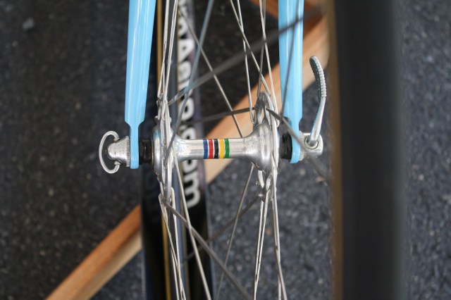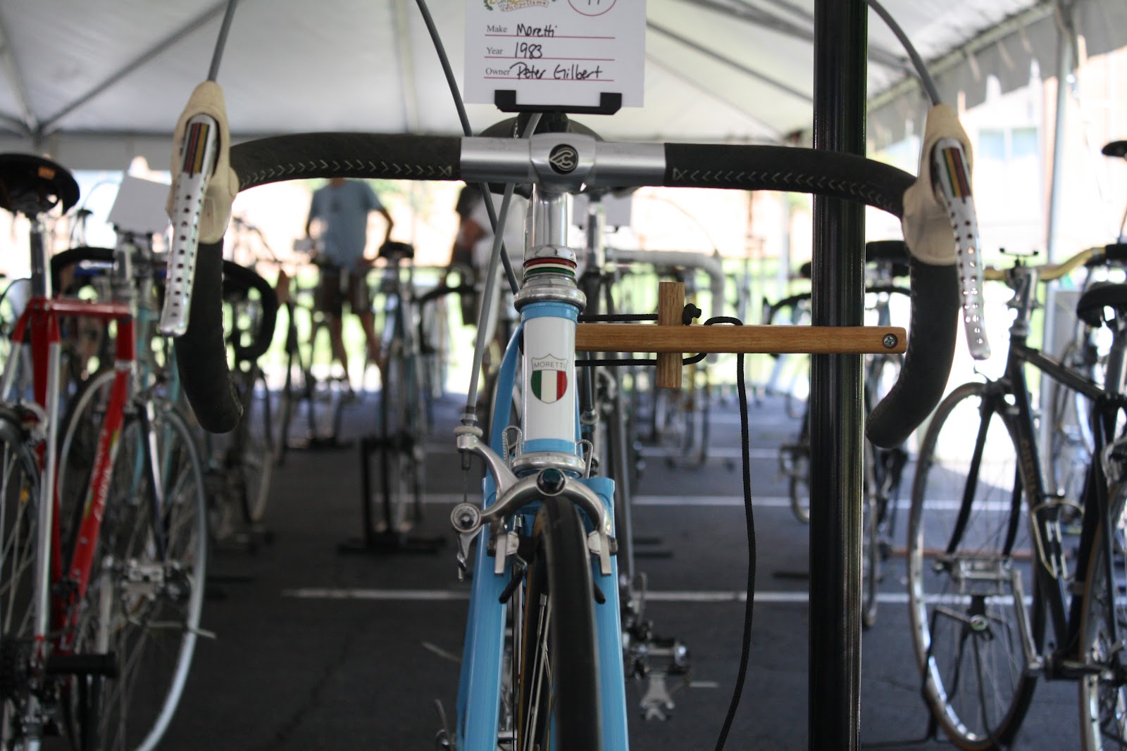 1983 Moretti road bike owned by Peter Gilbert.. Little touches like the stripes on the hubs and in the headset spacers make bikes like this a treat to look at in a show like Cirque.