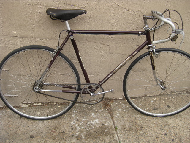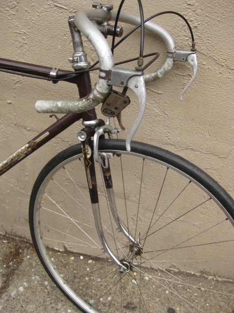 the wheels are 27″, rare Dunlop aluminum clincher rims. modern tires.
