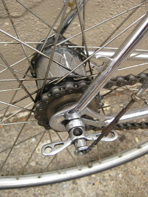 Sturmey Archer AW rear hub with rare Sturmey Quick Release cable attachment, and rear wingnuts.