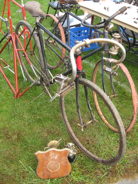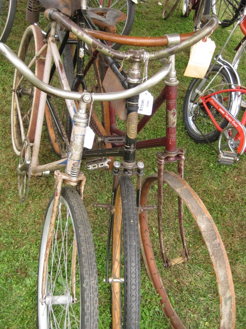 Pile of 3 early bicycles, 1890s-1900s. Racycle, American(Chicago), ???