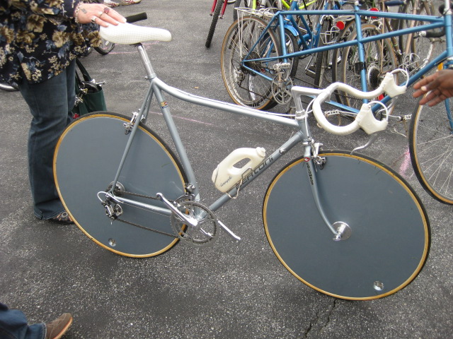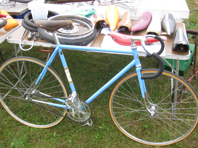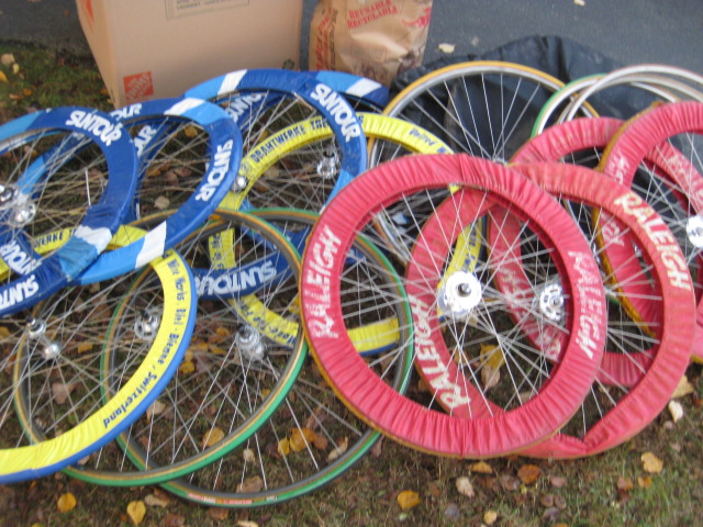 Wheels upon wheels! Suntour Superbe Pro and Campagnolo Nuovo Record in Raleigh and Suntour wheel coverings.