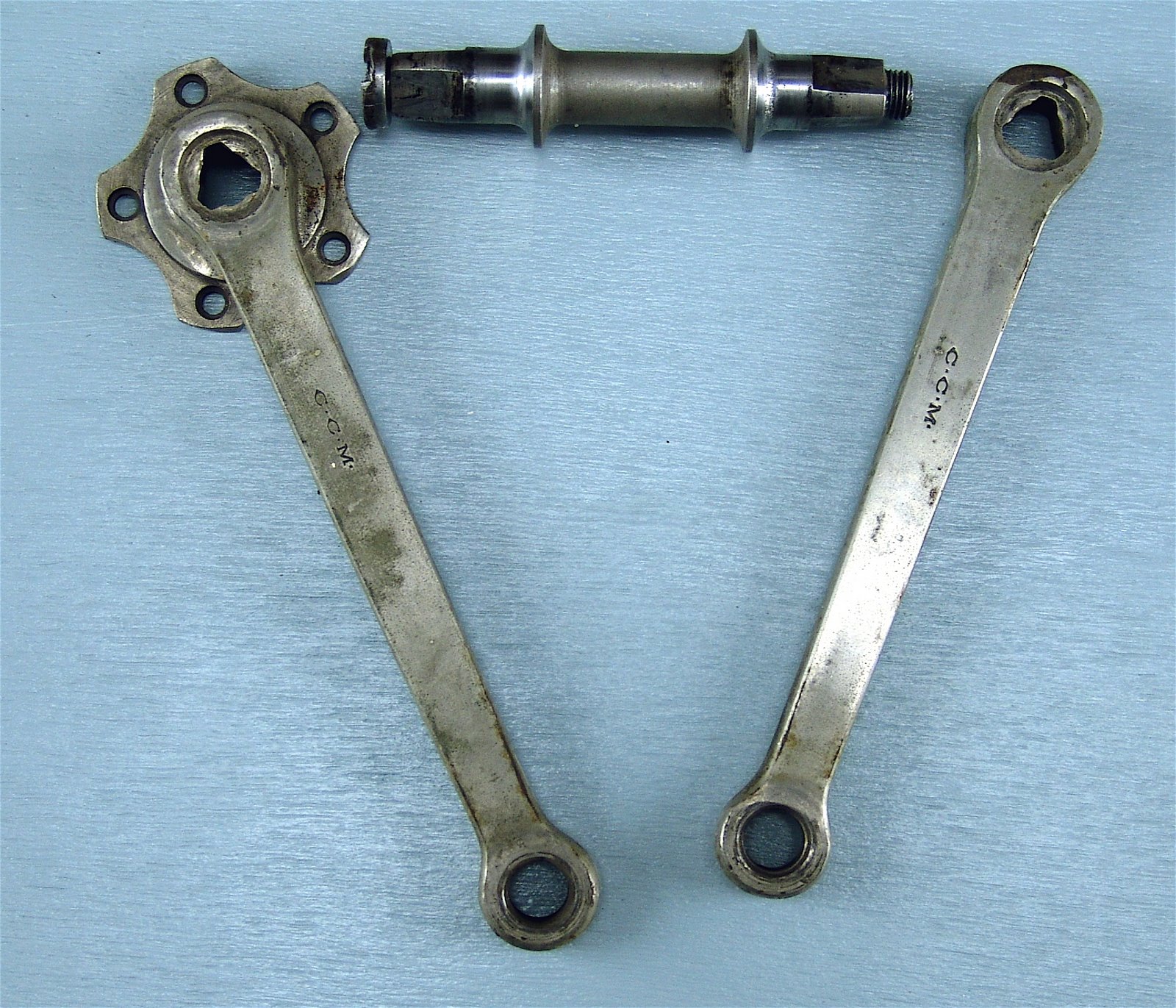 CCM cotterless cranks. rare design with a triangle taper, rather than the later standardized square taper. BSA chainring.