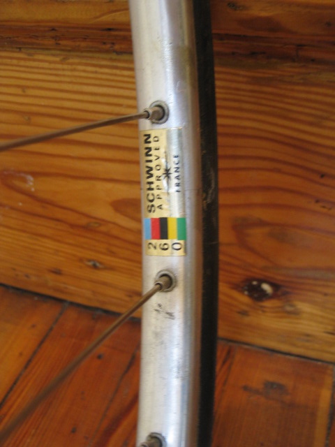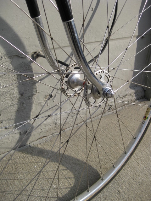 Campagnolo Nuovo Record track hubs(Schwinn double drilled hubs), tied and soldered in Schwinn Approved tubular rims.