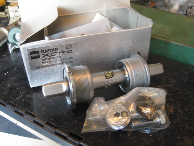 Suntour(japan), in conjunction with Wilderness Trail Brothers(WTB), later used a similar design with their XC-Pro bottom brackets with Grease Guard. The Suntour unit has a hole in the crank arm bolts, the spindle is hollow, and their is a hole on either side of the bearing races. Injecting fresh grease ultimately purges out the old grease.