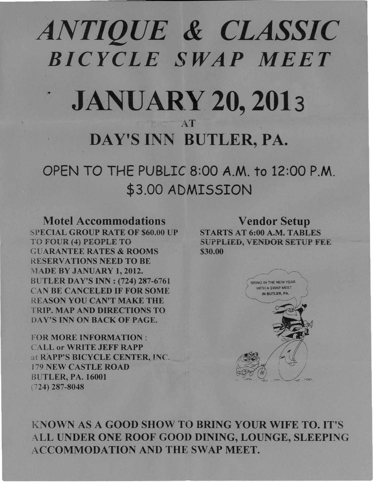 Yes, it is an indoor swap meet, keeping in mind it is about 45 minutes north of Pittsburgh! There is no website for the swap. here is where the swap is located- Days Inn Butler 139 Pittsburgh Road Butler, PA map link here Share this: Click to share on Facebook (Opens in new window) Facebook Click to share on X (Opens in new window) X Click to email a link to a friend (Opens in new window) Email Like Loading...