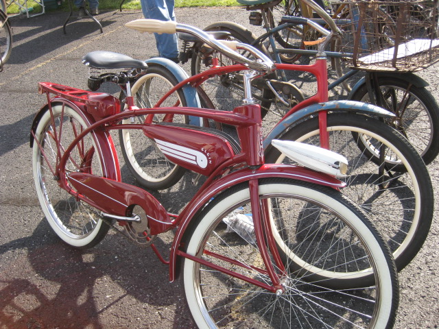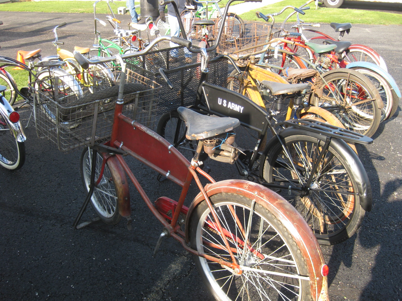 Beautiful lineup of balloon tire bikes- Shelby, Schwinns, and even an Elgin thrown in there.