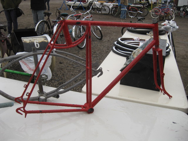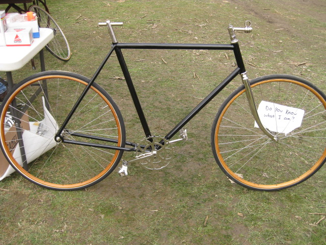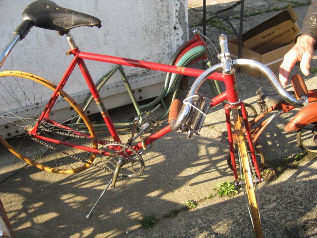 A Flying Gate design, but I have never seen one with the curved ‘loop’ under the seattube. Appears to be 1950s- dropouts and other fittings. Takes a unique unit type bottom bracket.