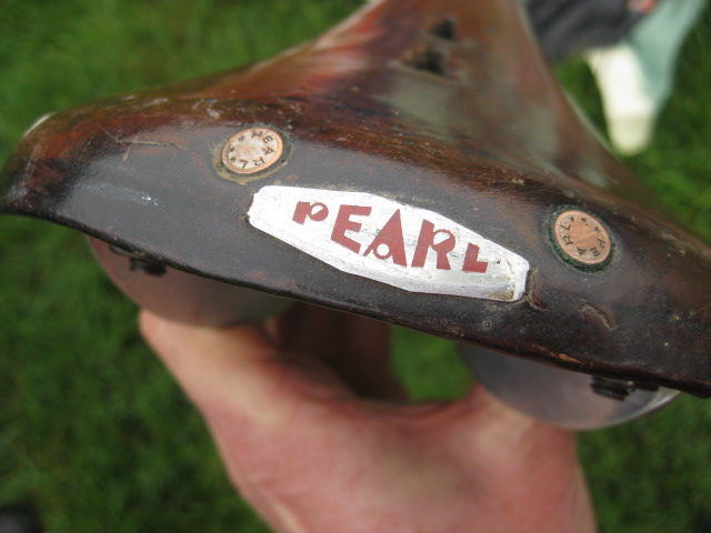 The French have a great sense of style with their lettering and logos, and the Pearl tag on the back of the saddle is no exception.