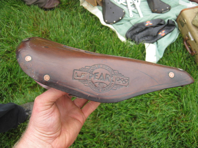 A fellow collector recently brought me a unique saddle from his collection. It was manufactured by Pearl, a French company that I have advertisements in old issues of Le Cycliste. It is a beautiful 1940s-1950s saddle with great patina and some interesting features.