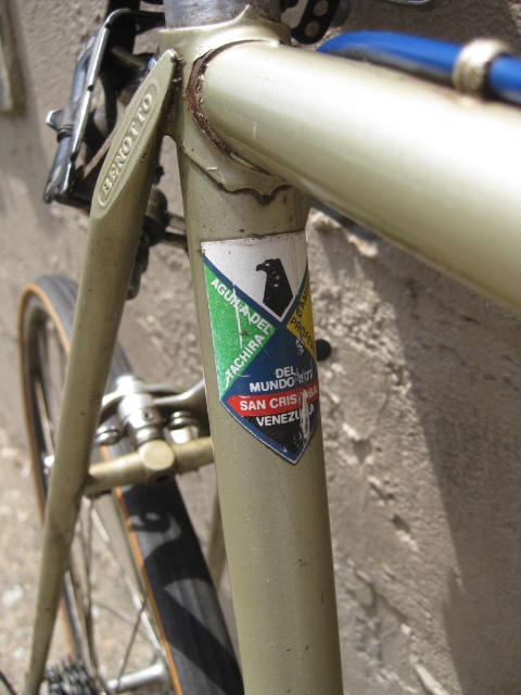 Nice Italian made Benotto. I am not sure what model it is. Galli headset, shifters, pedals, and crankset. Campagnolo Nuovo record front and rear derailleurs and hubs set. pantographed 3T seatpost., pantographed Cinelli stem, Cinelli handlebars. Soffatti saddle. Mix matched tubular rims- rear is a Mavic GP4 and the front rim is an Ambrosio.