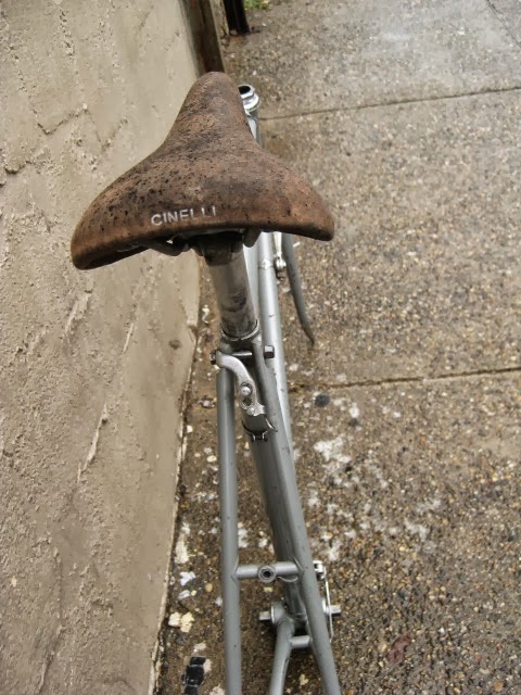 Cinelli #3 leather saddle. Silca pump with campagnolo pumphead, and Campagnolo pump umbrella.