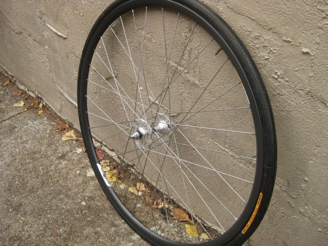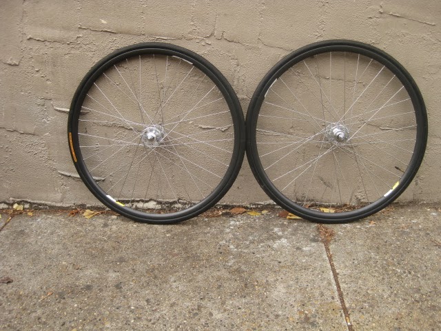 Really nice Campagnolo pista / track wheelset! Large flange Nuovo Record 36 hole laced to Campagnolo Omega clincher rims. Dark anodized and nice aero profile. Rims are 20mm tall. Continental ultra 2000 700 x 23 tires included, great shape. Campagnolo axle nuts and lock ring also included. See photos!